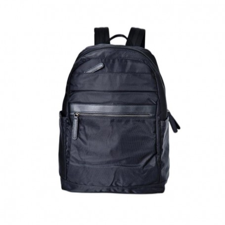 Un sac à dos élégant alliant tissu et cuir noir, parfait pour un look moderne.